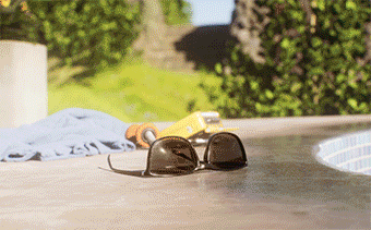 Subtle environmental details, like distant cicadas & pool water ripples.